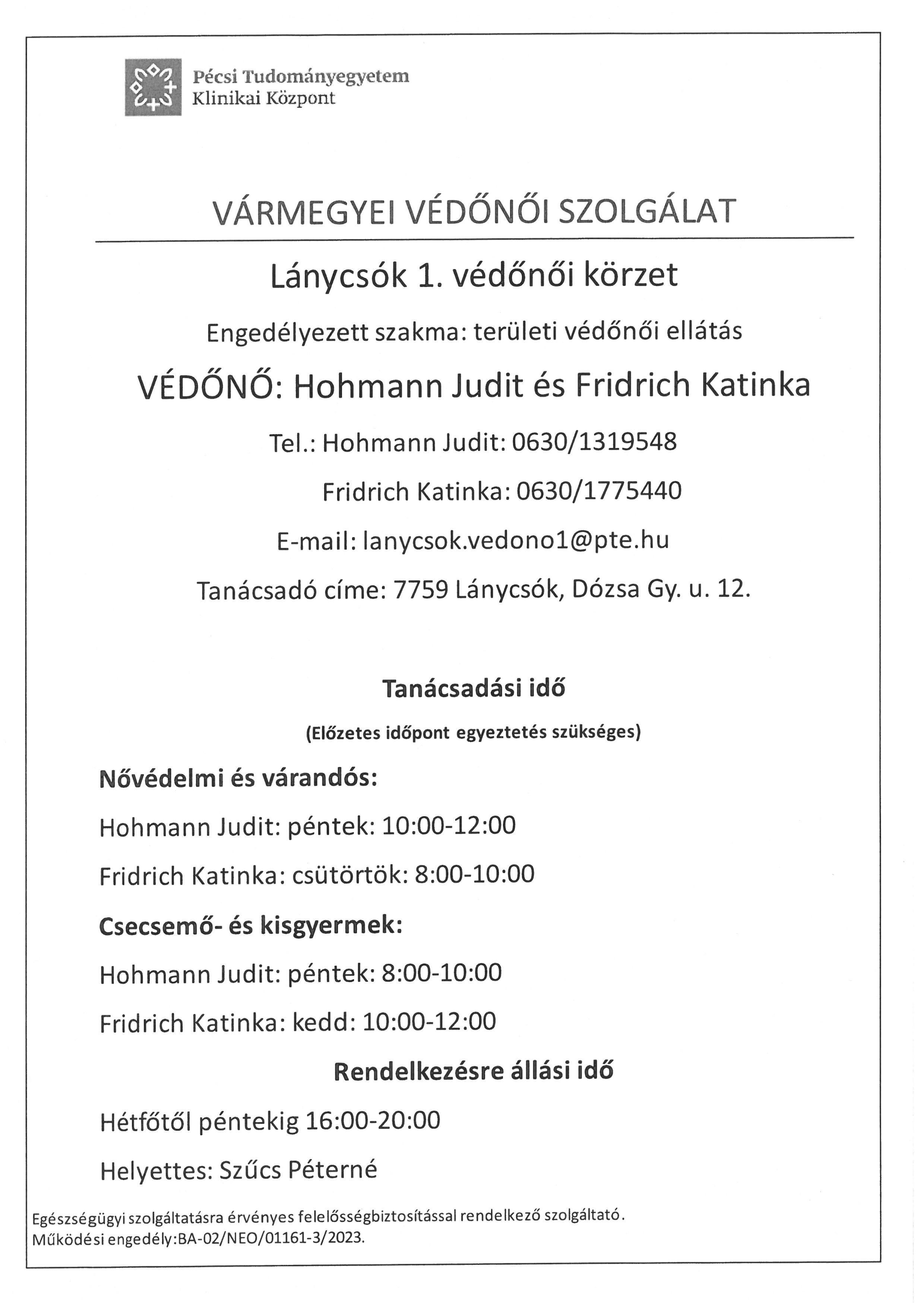 körzet: Hohmann Judit védőnő, +3630/1319548