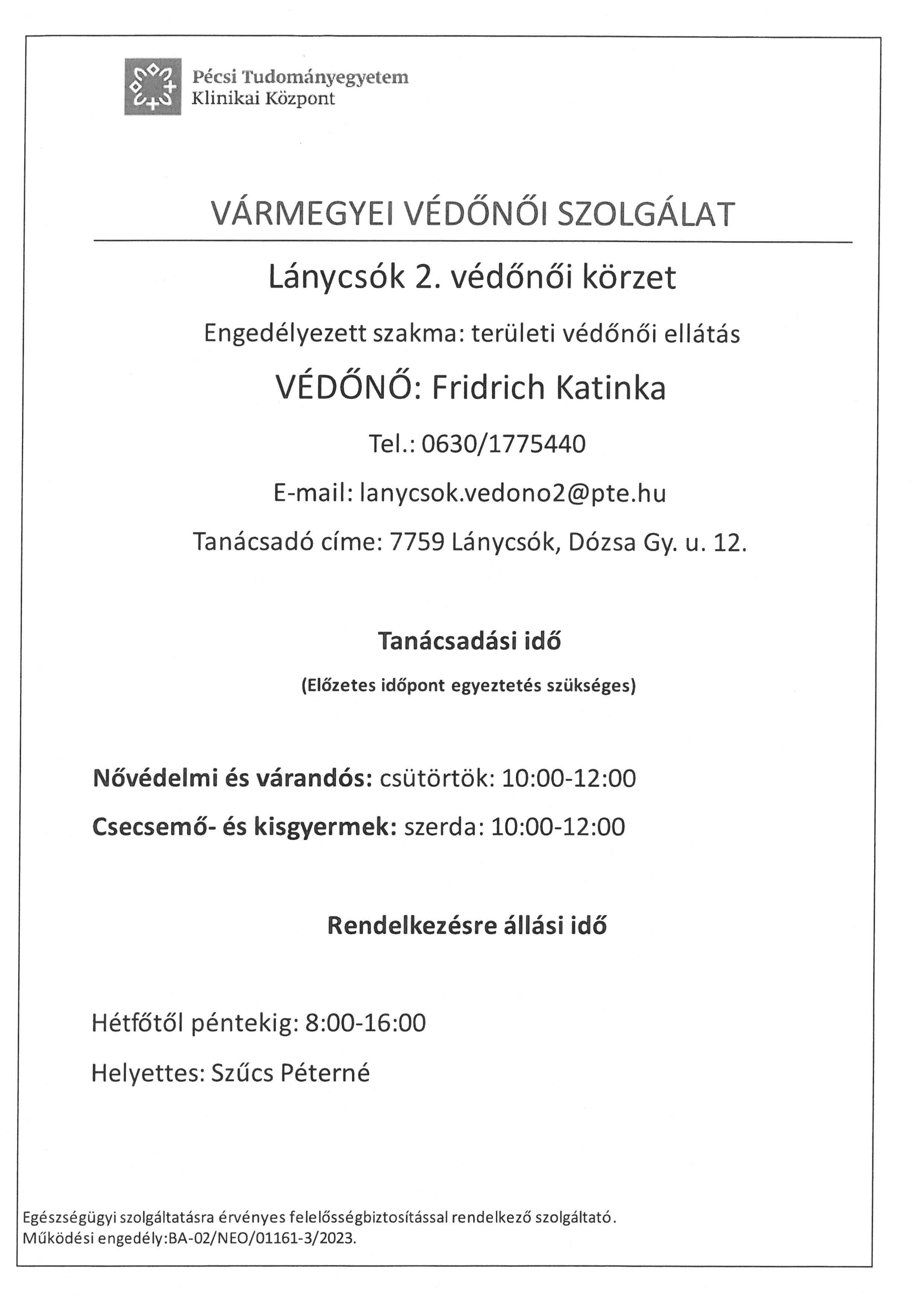 2. körzet: Fridrich Katinka védőnő, +3630/1775440